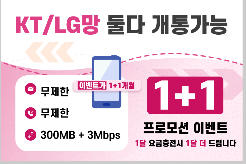 1. 데이터 3mbps 속도로 무제한 제공됩니다.(유튜브 재생에 무리없는 속도)